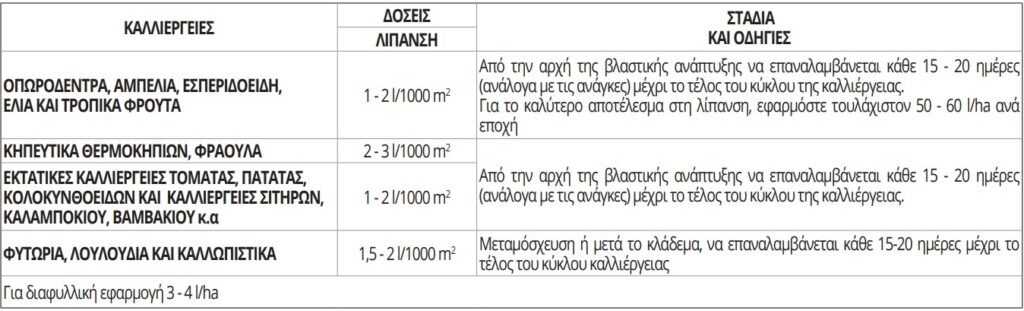 Δόσεις Εφαρμογής & Οδηγίες Καλλιέργειας: