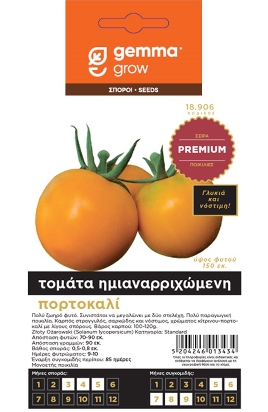 Η Τομάτα Zloty Ozarowski της Gemma Premium είναι μια πολύ παραγωγική, γλυκιά και ζωηρή ημιαναρριχώμενη ποικιλία με καρπούς λαμπερού πορτοκαλί χρώματος. Οι καρποί της είναι στρογγυλοί, σαρκώδεις και ιδιαίτερα νόστιμοι, με βάρος 100–120 g και λίγους σπόρους — ιδανικοί για σαλάτες, σάντουιτς ή φρέσκια κατανάλωση.