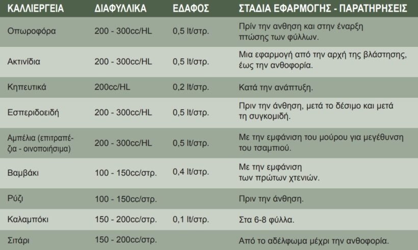 ● Τύπος χρήσης: Βιοδιεγέρτης άνθησης & καρπόδεσης