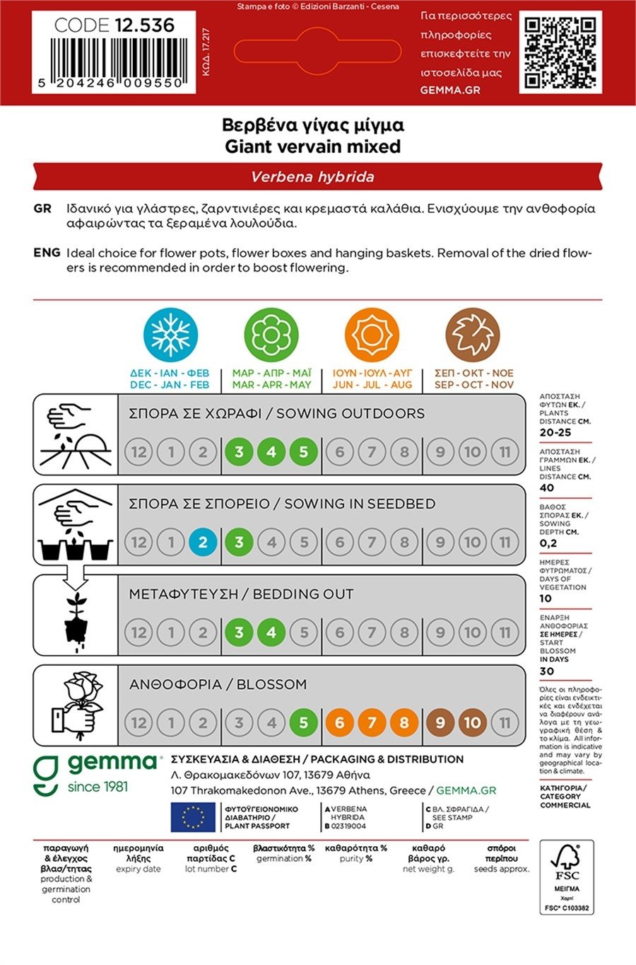 ✅ Ποιότητα Gemma – εγγυημένη φυτρωτικότητα και καθαρότητα σπόρων.