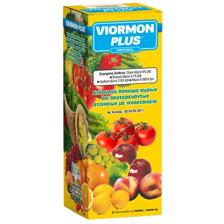 Το Viormon Plus είναι ένας βιο-ενεργοποιητής αυξητικός και καρποδετικός παράγοντας, ειδικά σχεδιασμένος για να προάγει την άνθηση, την καρπόδεση και την ομαλή ανάπτυξη καρπών σε όλες τις καλλιέργειες. Λειτουργεί υποστηρικτικά στα κρίσιμα στάδια ζωής των φυτών, μειώνοντας το στρες και ενισχύοντας τη φυσική τους ισορροπία.