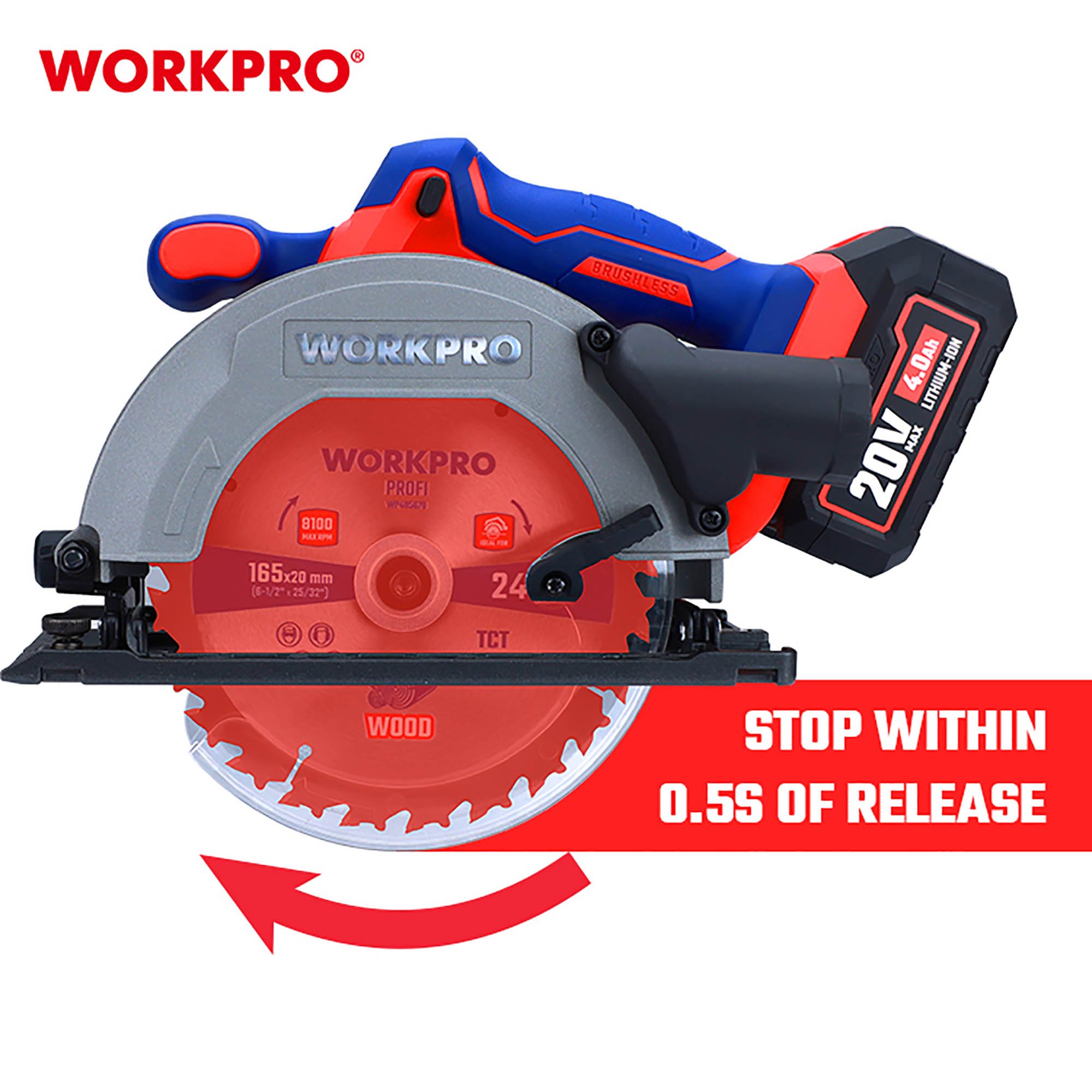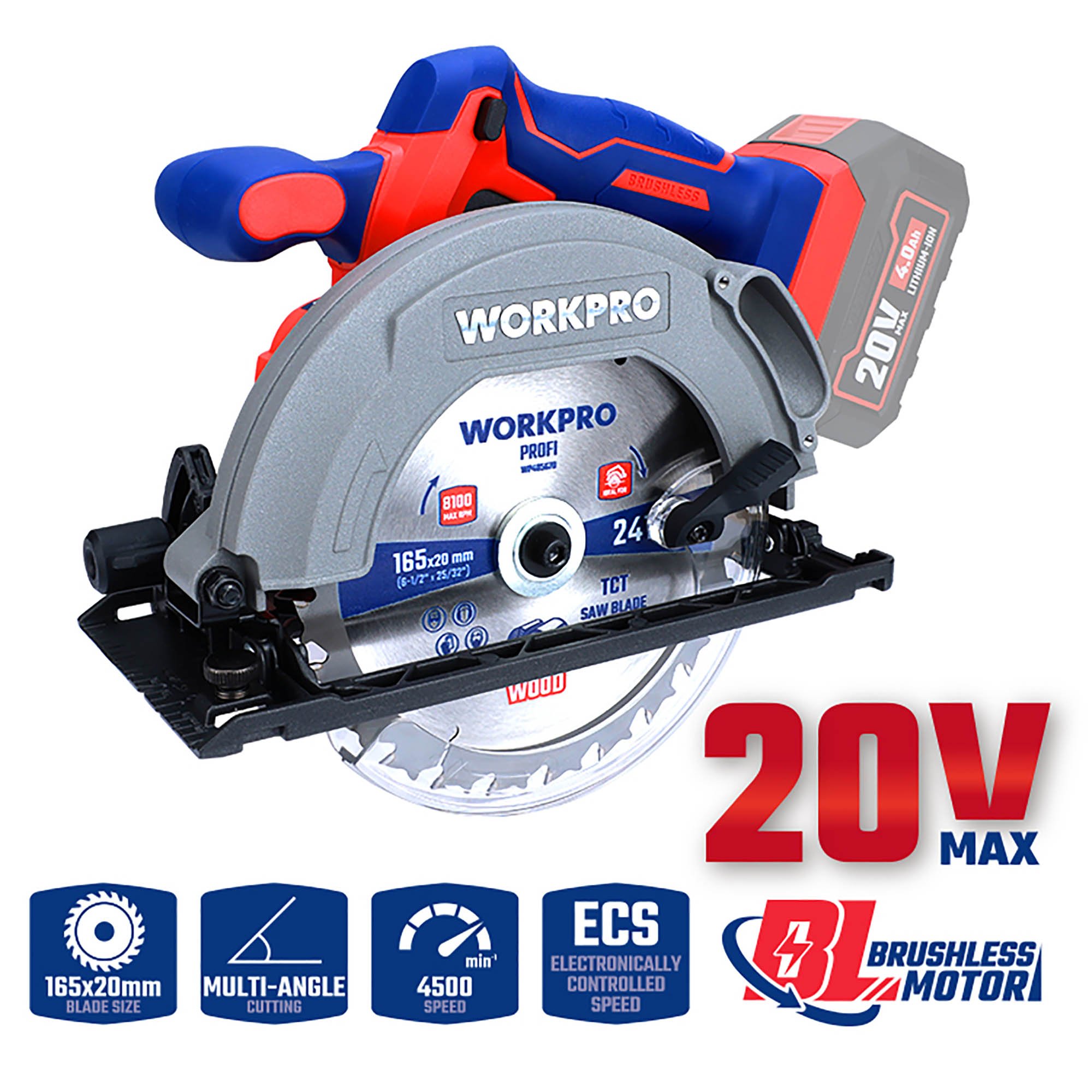 ο WORKPRO WP391200 20V-Li BL PROFI είναι ένα επαγγελματικό επαναφορτιζόμενο δισκοπρίονο χειρός σχεδιασμένο για κοπές υψηλής ακρίβειας σε ξύλο και άλλα υλικά.