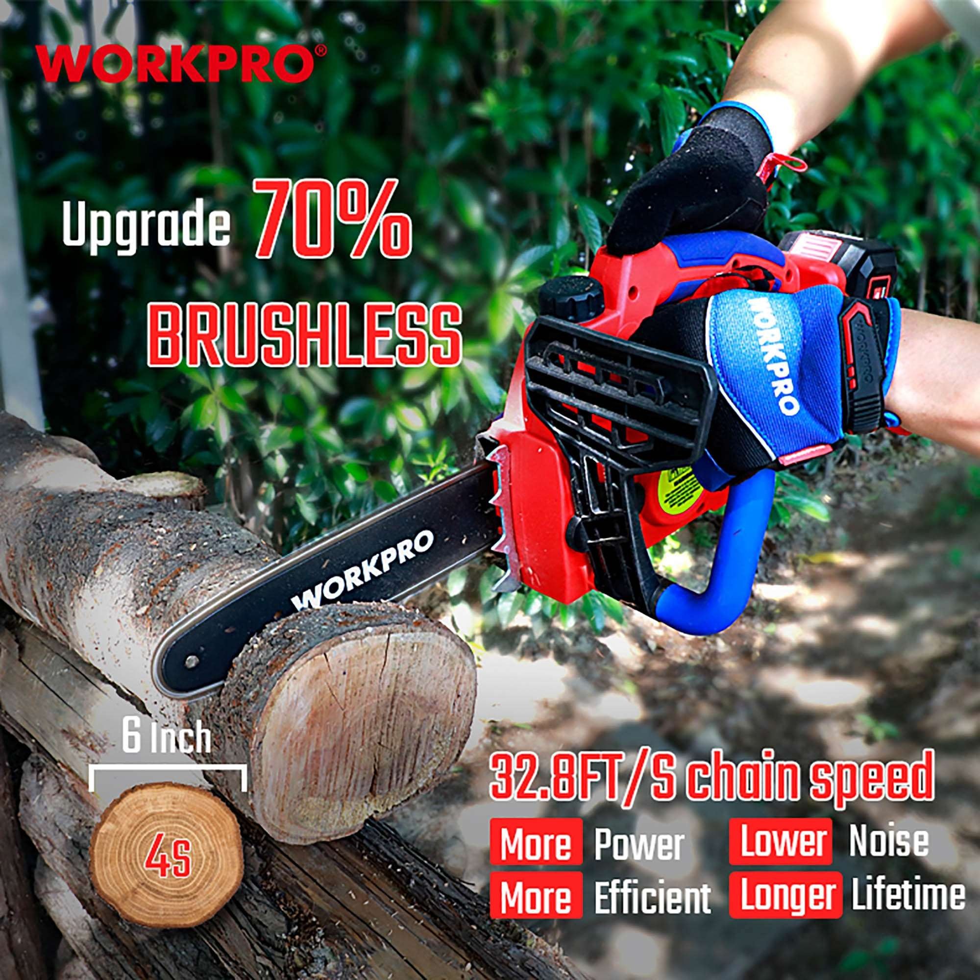 Το επαναφορτιζόμενο αλυσοπρίονο κλαδευτικό WORKPRO WP391601 20V-Li BL PROFI είναι σχεδιασμένο για επαγγελματική χρήση, προσφέροντας απόλυτη δύναμη, φορητότητα και αξιοπιστία.