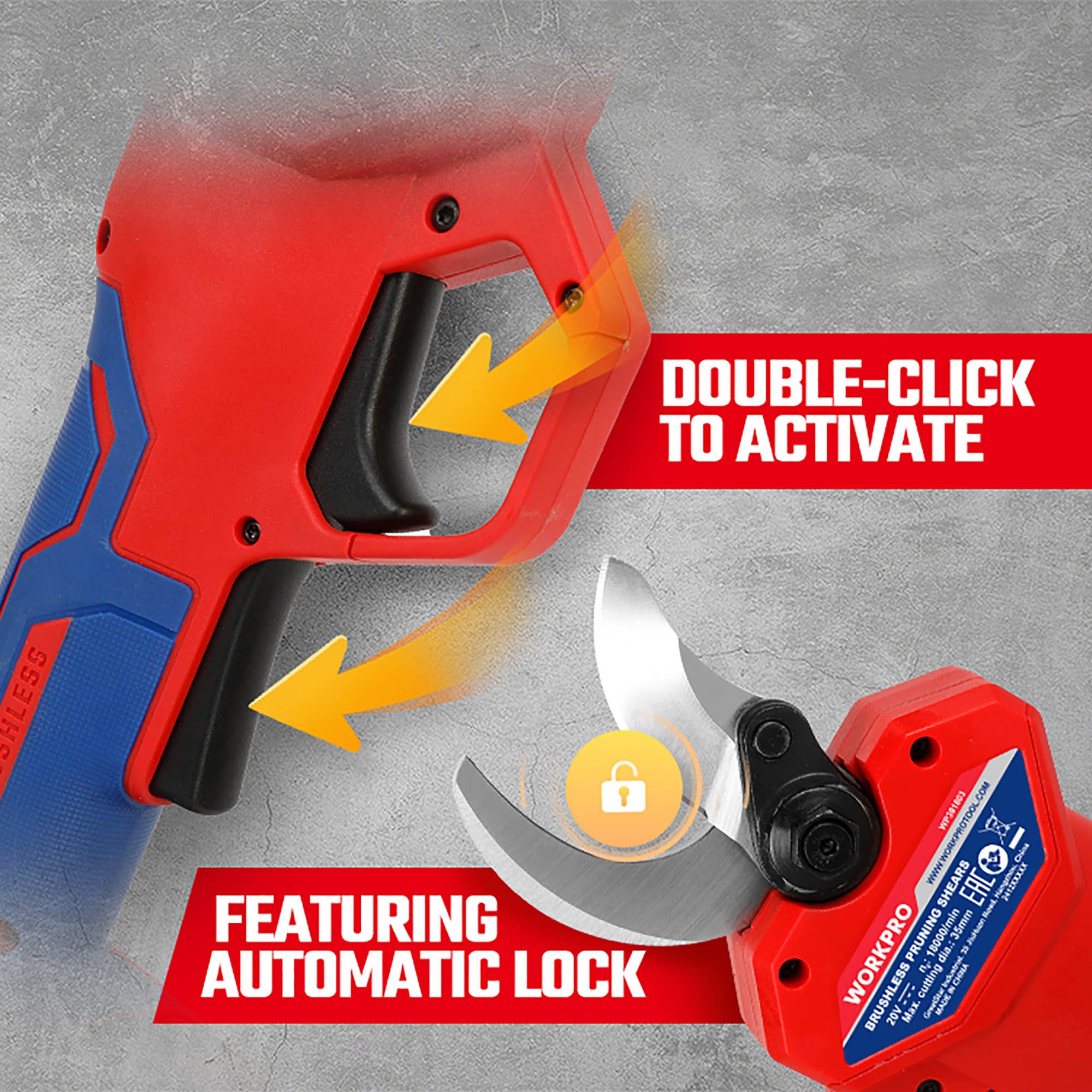 Το WORKPRO WP391603 20V-Li BL PROFI είναι το απόλυτο επαναφορτιζόμενο ψαλίδι κλαδέματος για επαγγελματίες και απαιτητικούς ερασιτέχνες.