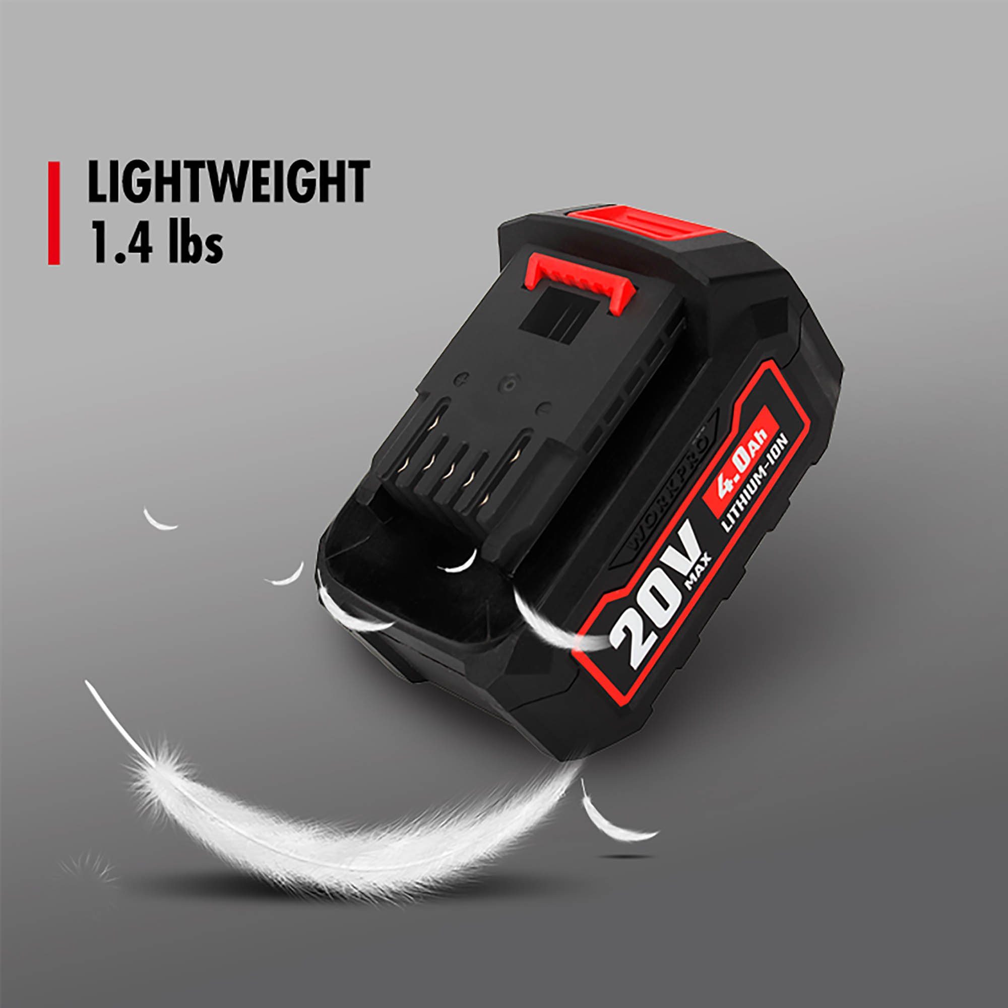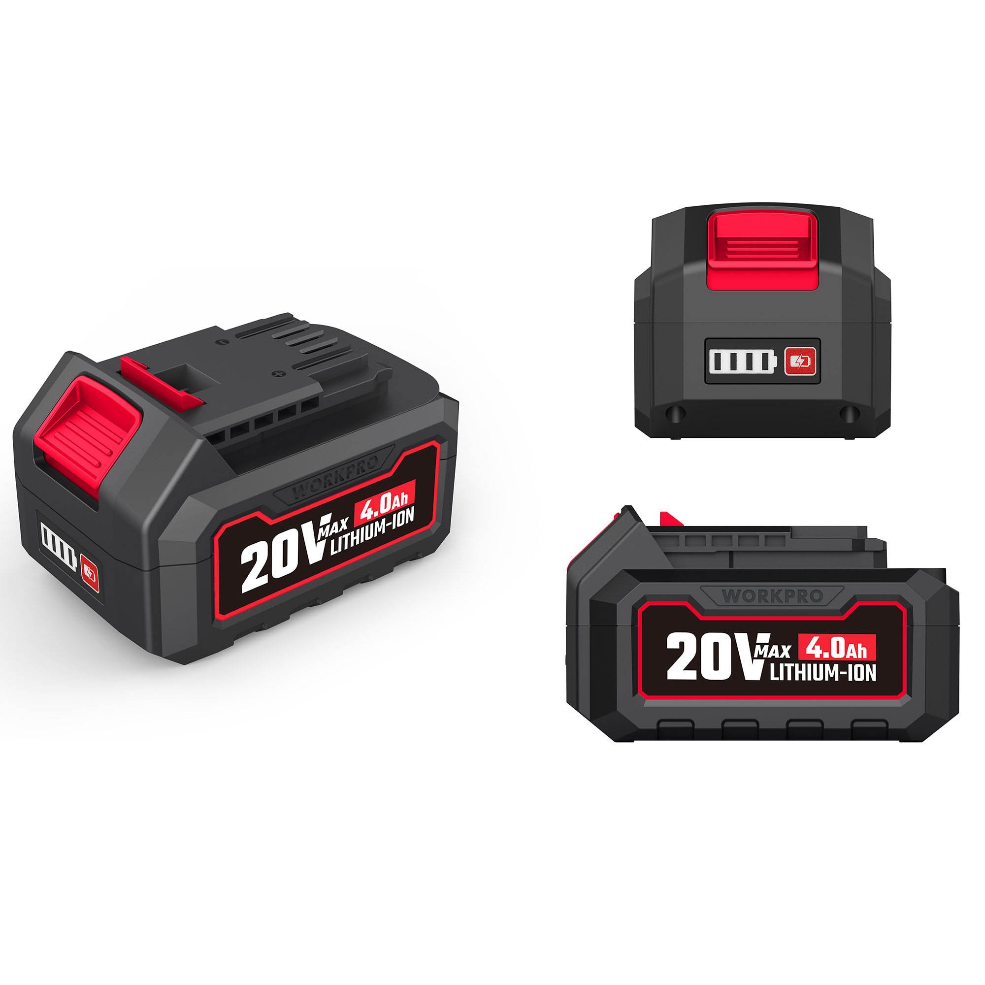 Η WORKPRO WP395002 20V-Li 4.0Ah PROFI προσφέρει διπλάσια αυτονομία και απόλυτη ισχύ για όλα τα 20V εργαλεία WORKPRO.
