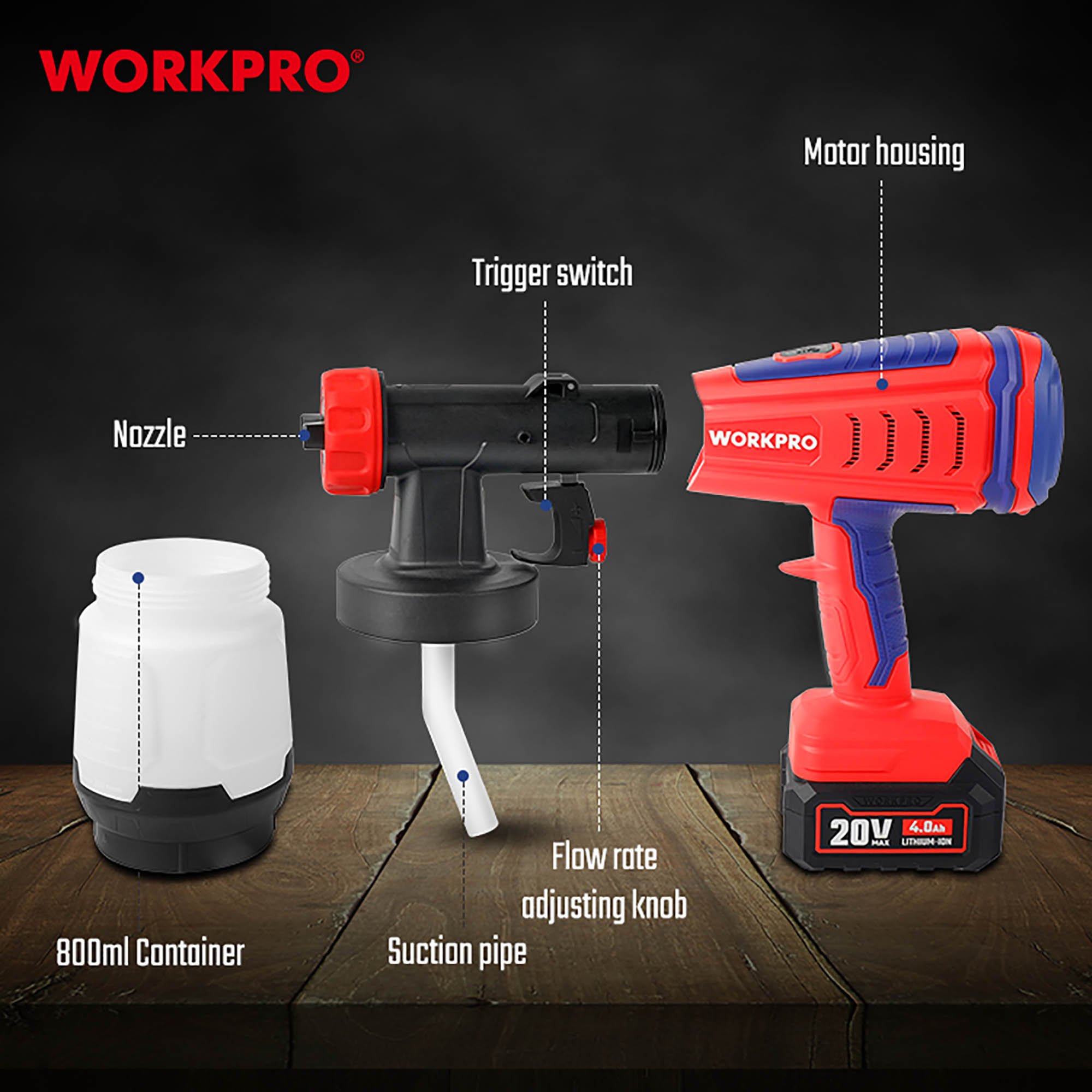 Το επαναφορτιζόμενο πιστόλι βαφής WORKPRO WP397010 20V-Li BL SOLO προσφέρει επαγγελματικά αποτελέσματα βαφής χωρίς καλώδια και χωρίς κόπο.