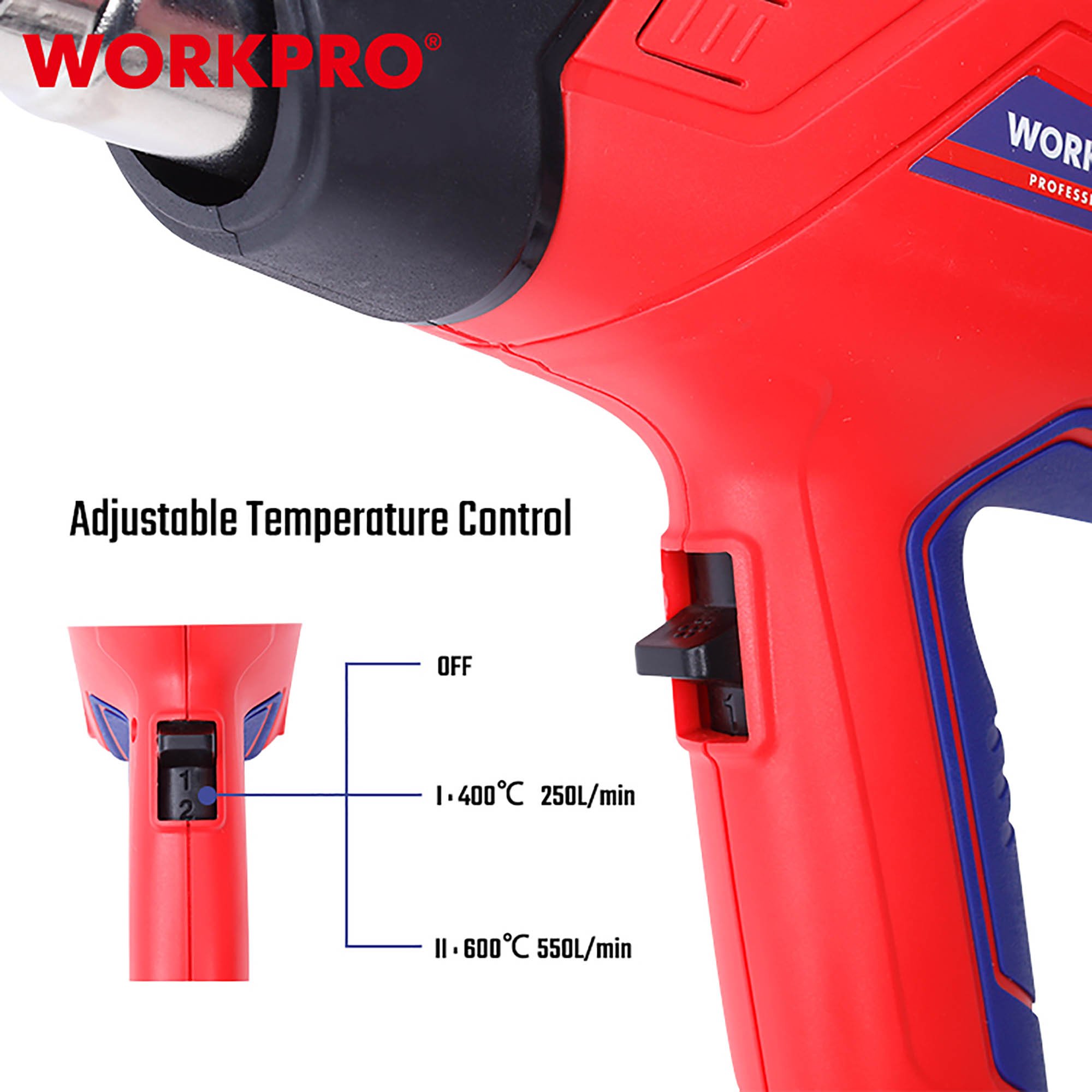 Το WORKPRO WP474000CE 2000W PROFI είναι ένα πολυλειτουργικό πιστόλι θερμού αέρα που προσφέρει δύναμη, ακρίβεια και ασφάλεια σε κάθε εργασία.
